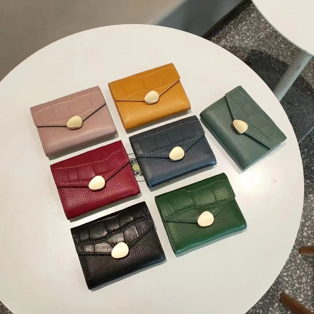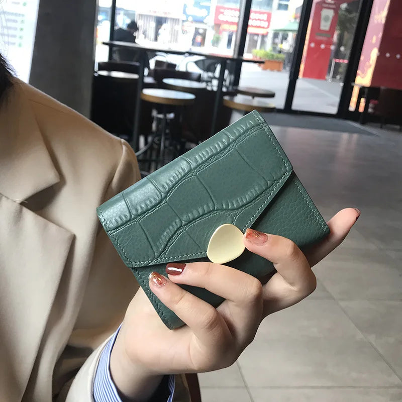 This women's wallet is made of high-quality leather and features a hasp closure. It's a small and compact purse that is perfect for carrying your essentials.