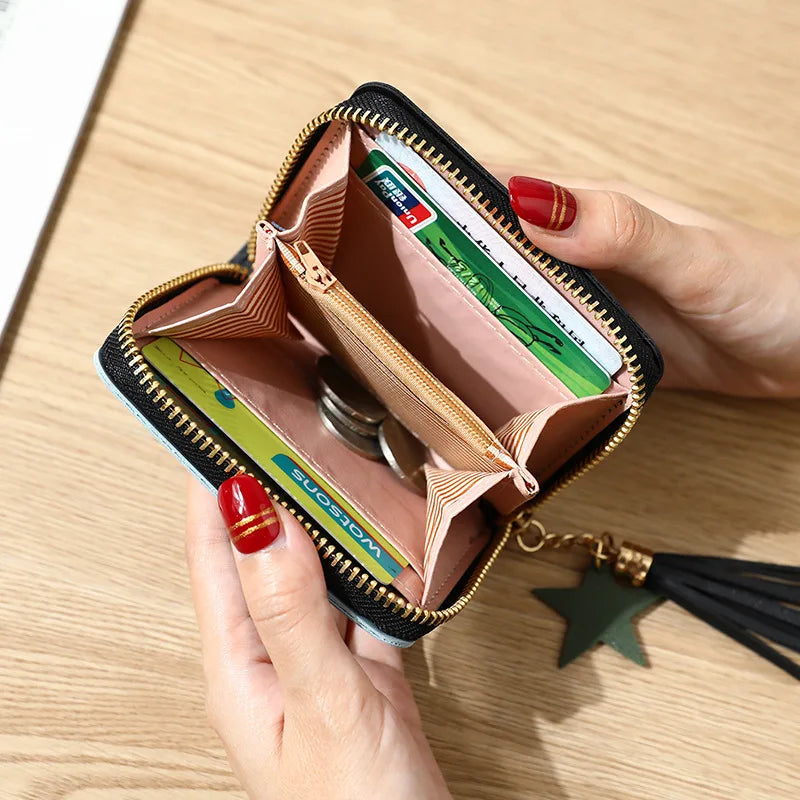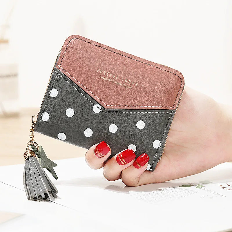 This trendy wallet is perfect for women on-the-go. It features a short tassel design and a cute dot pattern, making it a lovely accessory for any outfit.