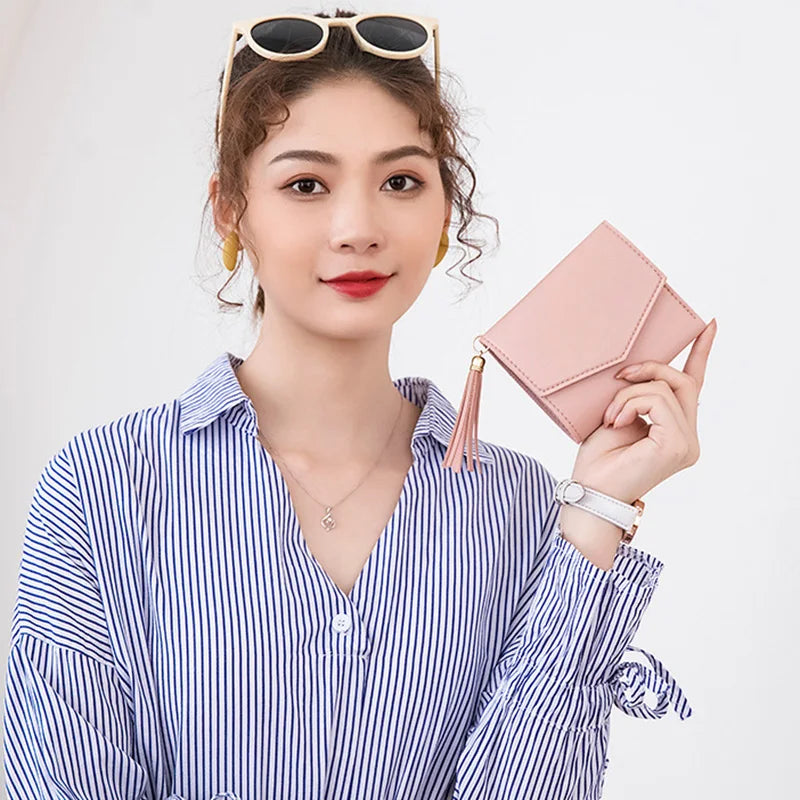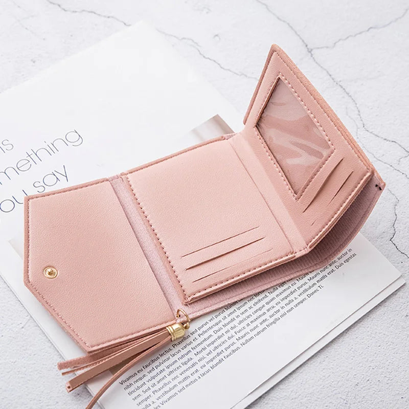 Short Wallets Women Foldable PU Leather Money Bag Photo Holder Tassel
