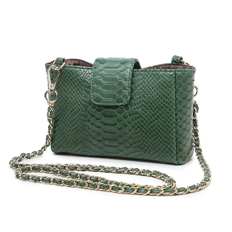 Snake Skin Chain Bag Mini Square Wallet Messenger Bag