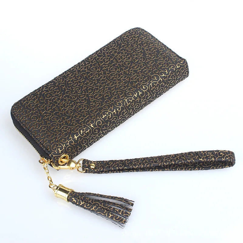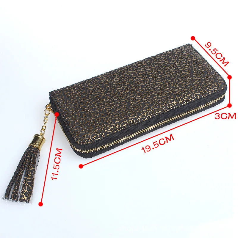 Solid Printing Tassel Ladies Wallet Large Capacity Clutch Bag Zipper Purse