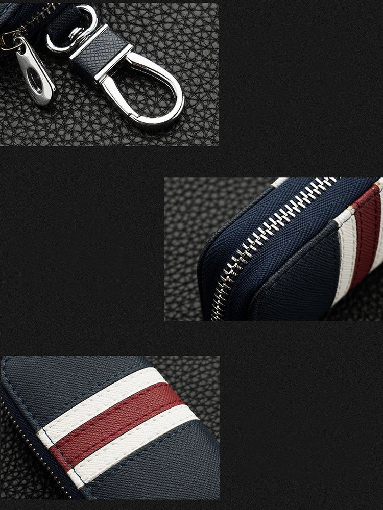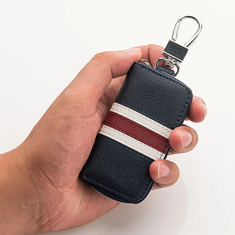 Stripes Leather Key Bag Key Case Universal Key Wallet Mini Zipper Purse