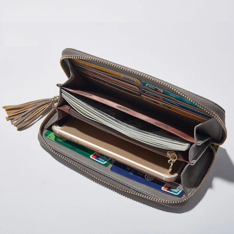 Stay organized with this spacious and stylish women's wallet featuring a tassel zipper and plenty of room for all your essentials.