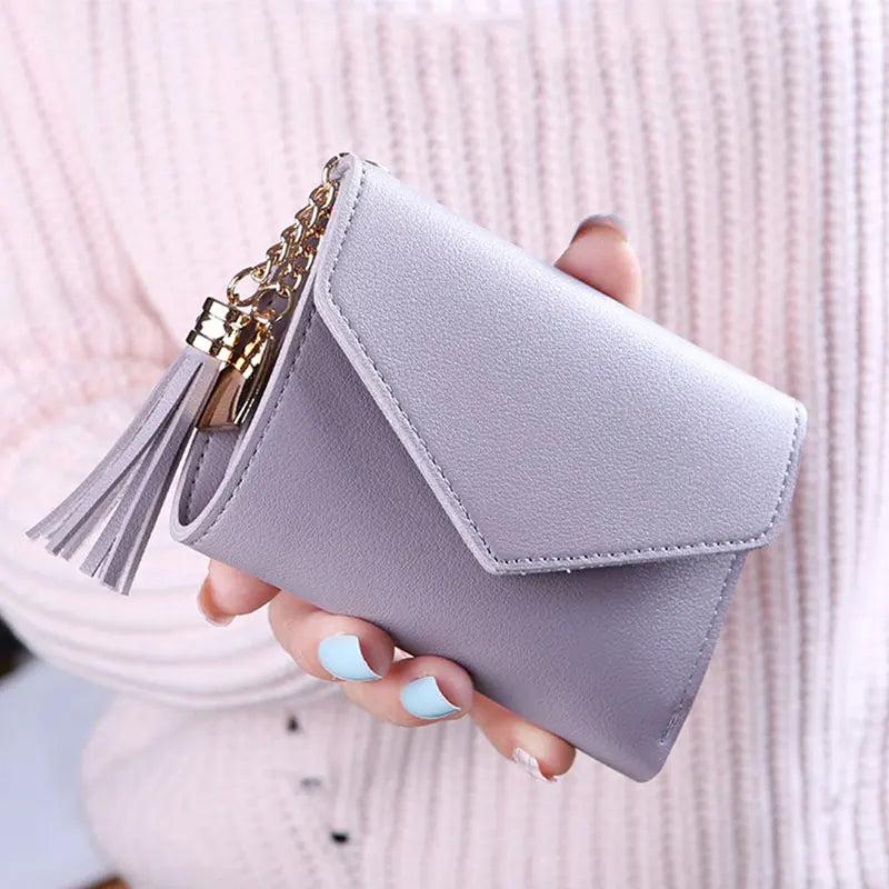 This women's wallet features a tassel design and is perfect for students. It is a stylish and affordable option for girls looking for a small and cute purse.