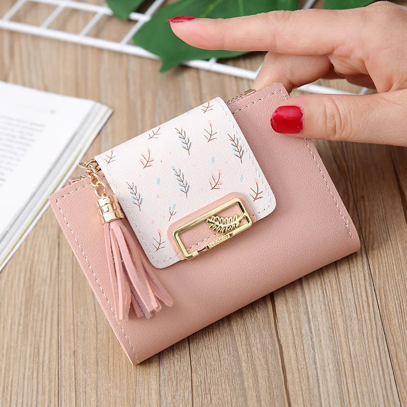 Tassel Women Wallet Small Leather Short Zipper Purses Female Clutch