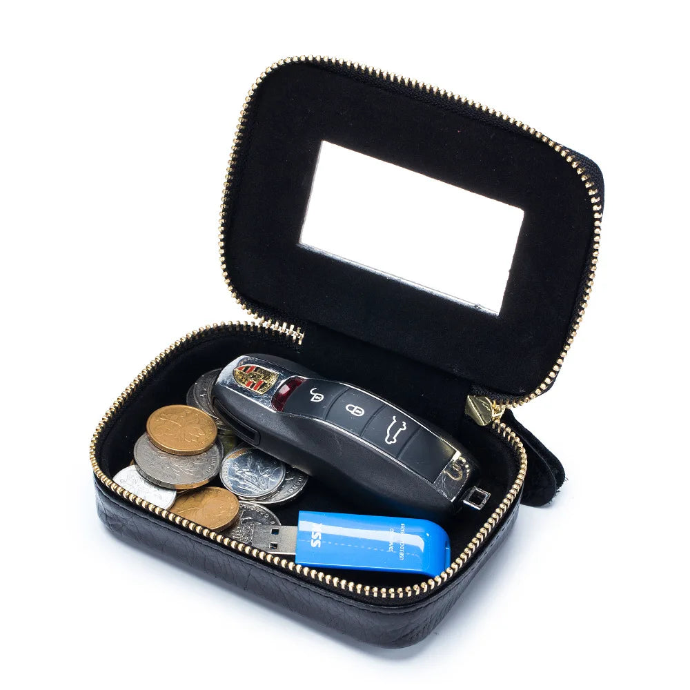 Unistybag Lipstick Bag Leather Makeup Case Mini Purse Women Cosmetic Bag Mirror