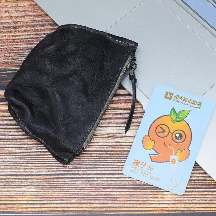 Veg-Tanned Leather Wallet Men's Short High-Quality Cowhide Zipper Wallet