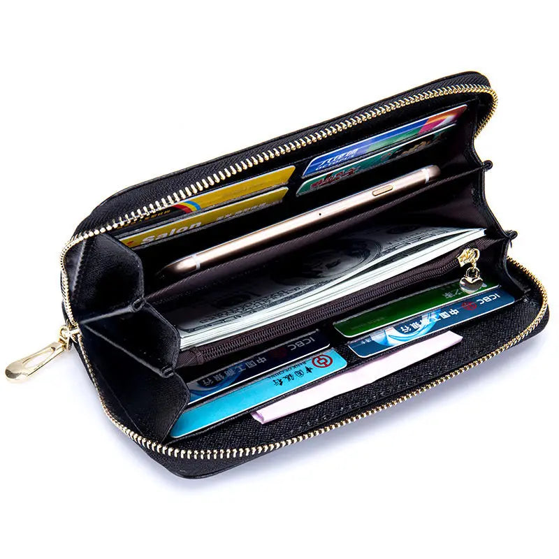 This women's leather wallet features a unique hollow out design, perfect for a vintage look. It's a long wallet that can also be used as a clutch bag for casual occasions.