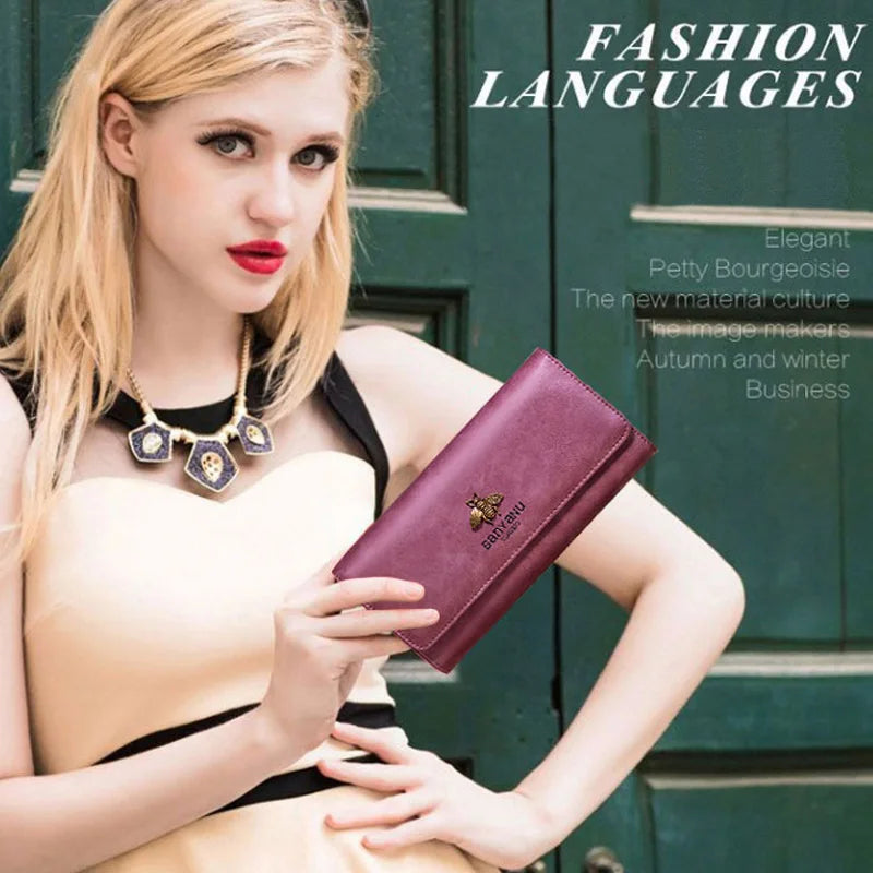 This women's leather wallet is made of high-quality cow leather with a vintage design. It features a secure hasp closure and multiple compartments for cards, cash, and your phone.