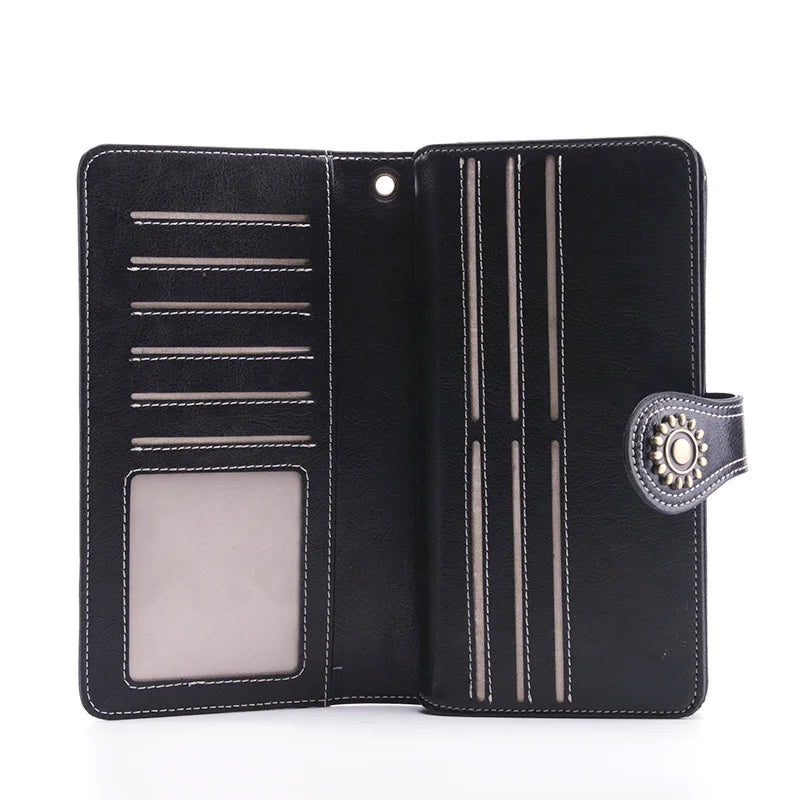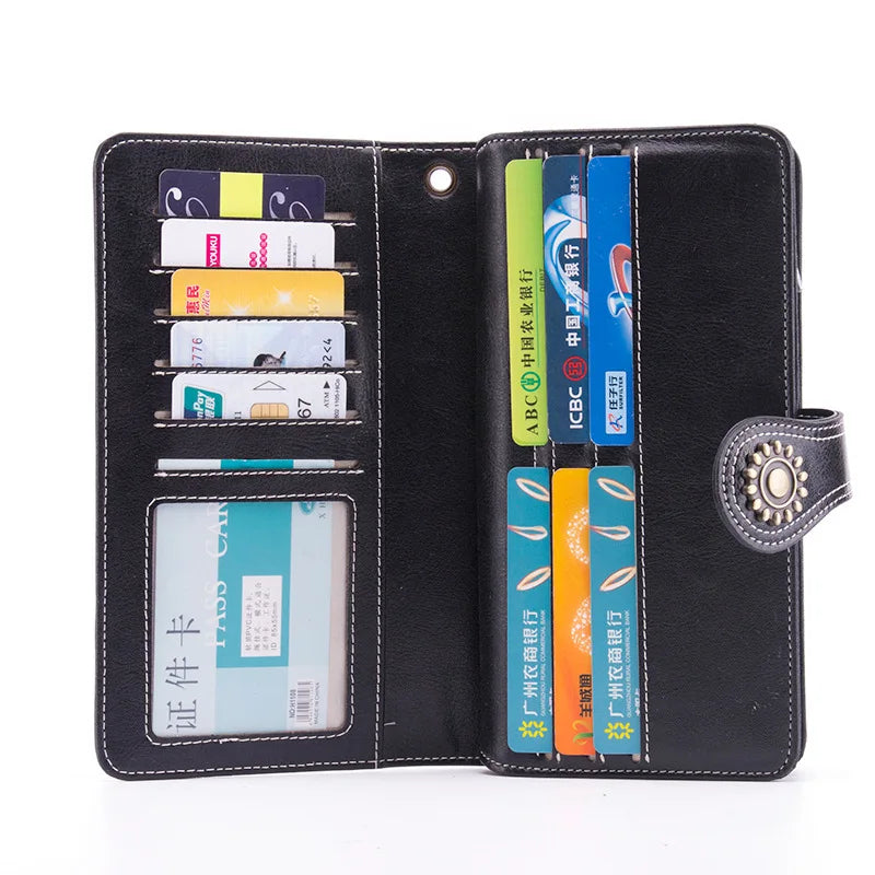 Vintage Oil Wax Leather Women Wallet Female Leather Purse Clutch Long Wallet