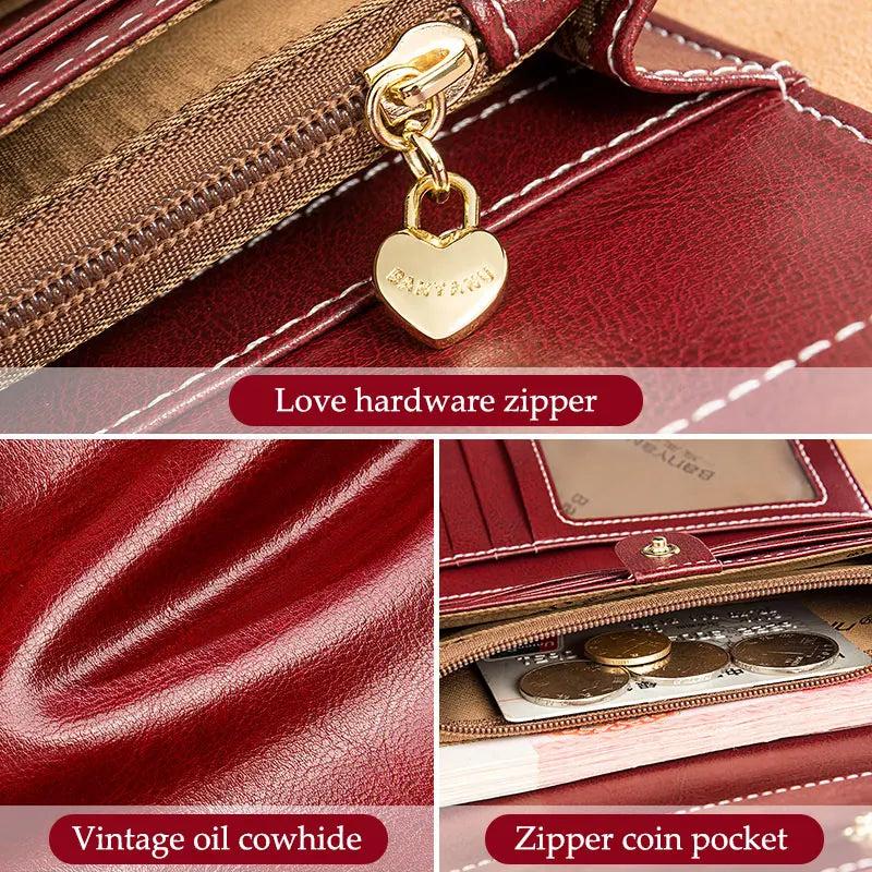 Vintage Oil Wax Women Leather Wallet Large Capacity Clutch Purse Ladies Bag