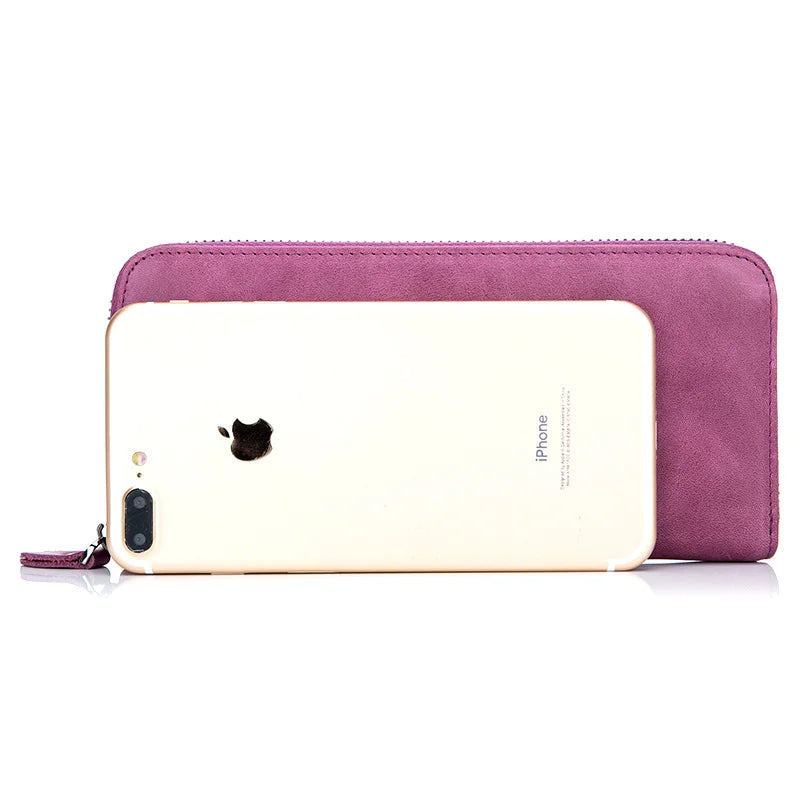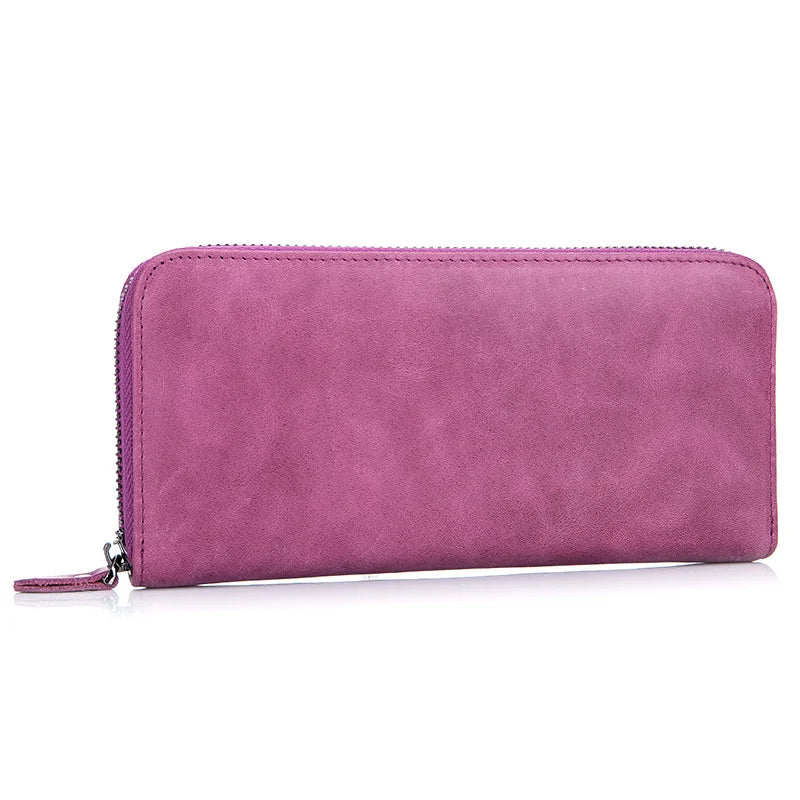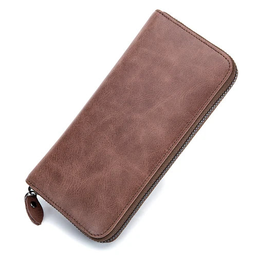 Vintage Women Zipper Purse Oil Waxing Leather Wallets