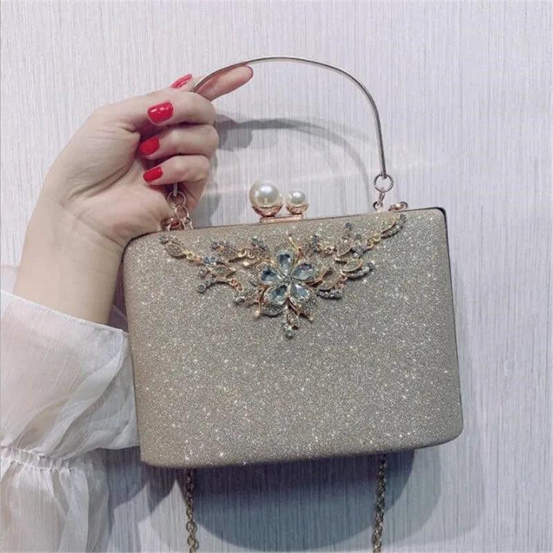 Women Bling Flowers Wedding Dinner Bags Chain Purse For Ladies
