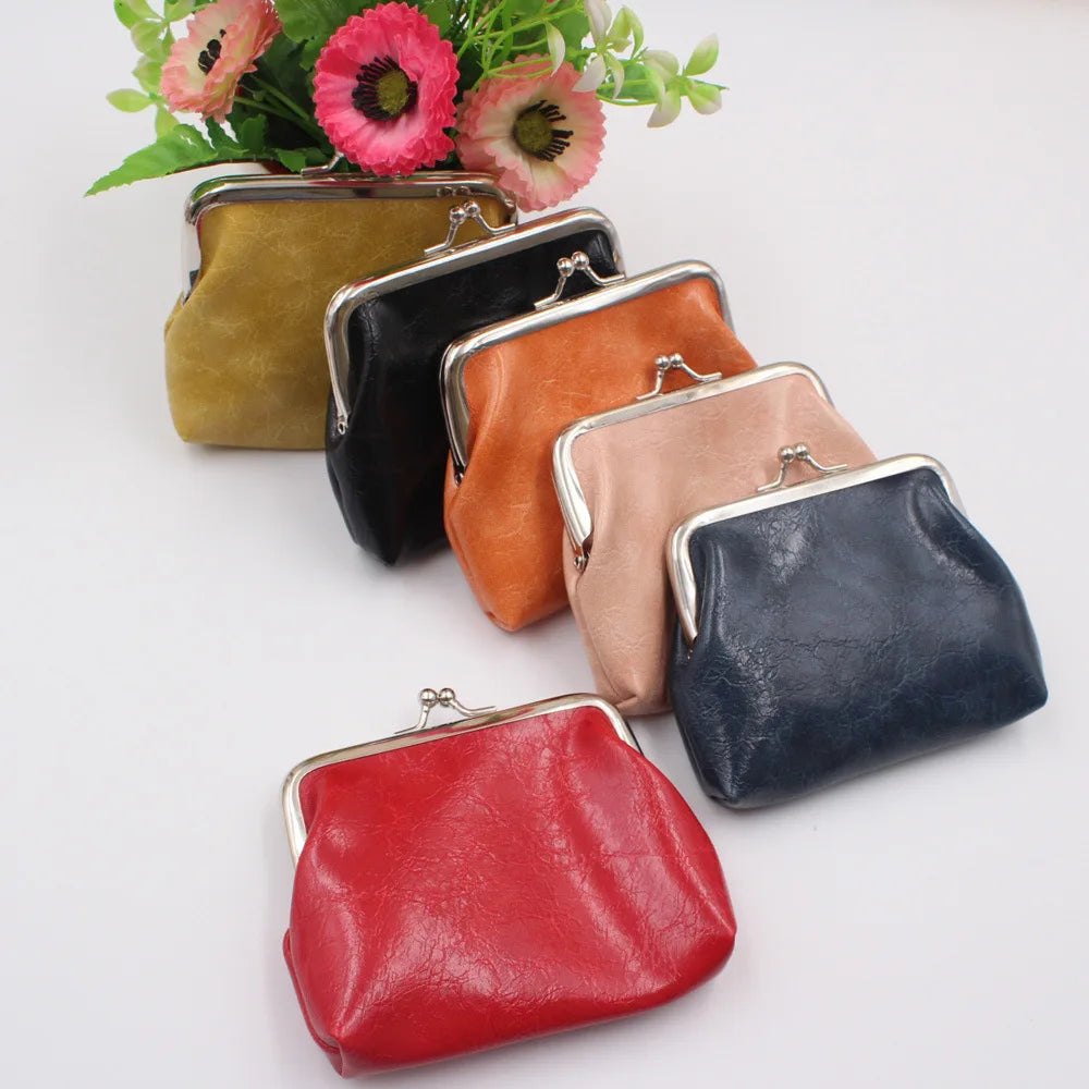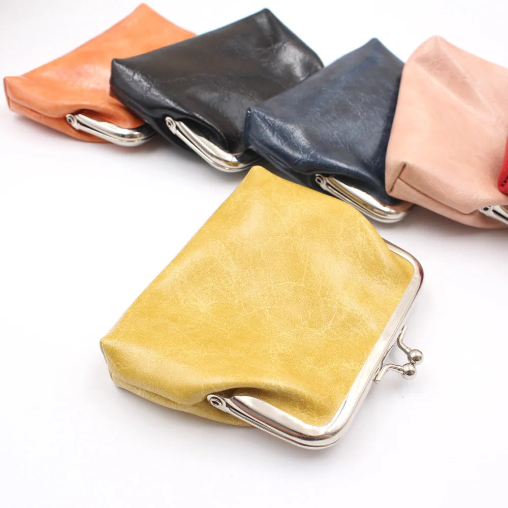Women Coin Purse Oil Wax PU Leather Wallet 4 Inch Buckle Mini Wallet Coin Bag