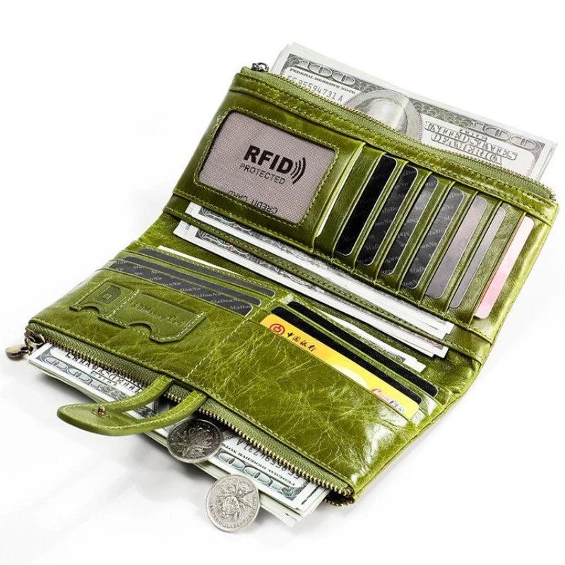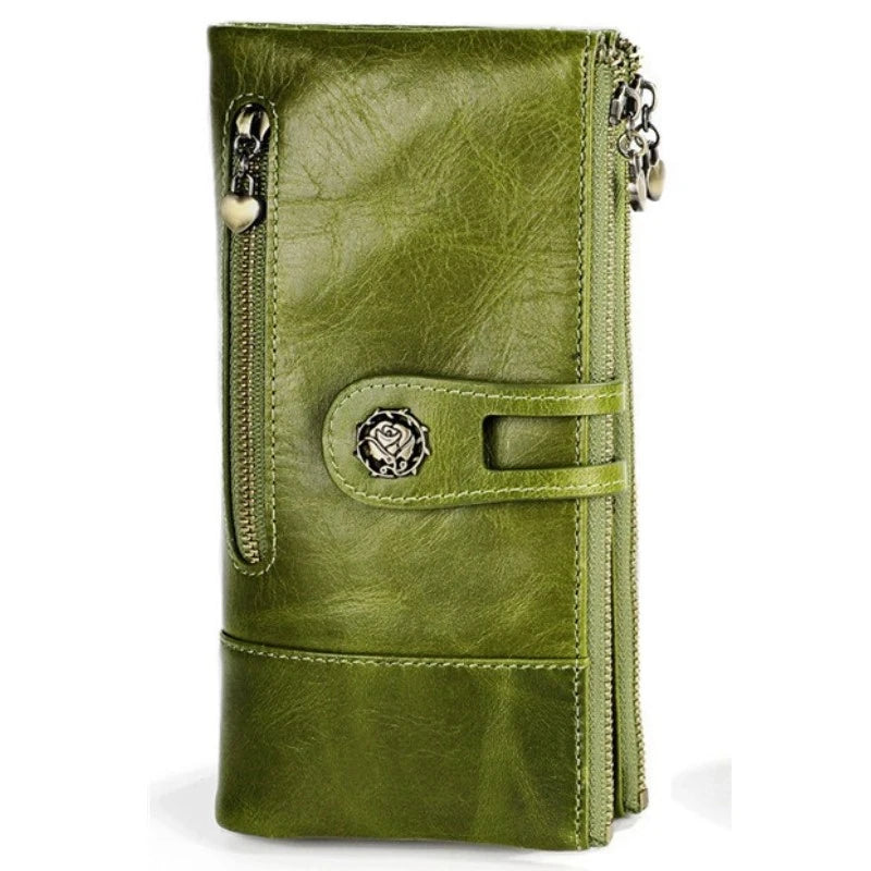 Women Hasp Zipper Cow Leather RFID Wallet