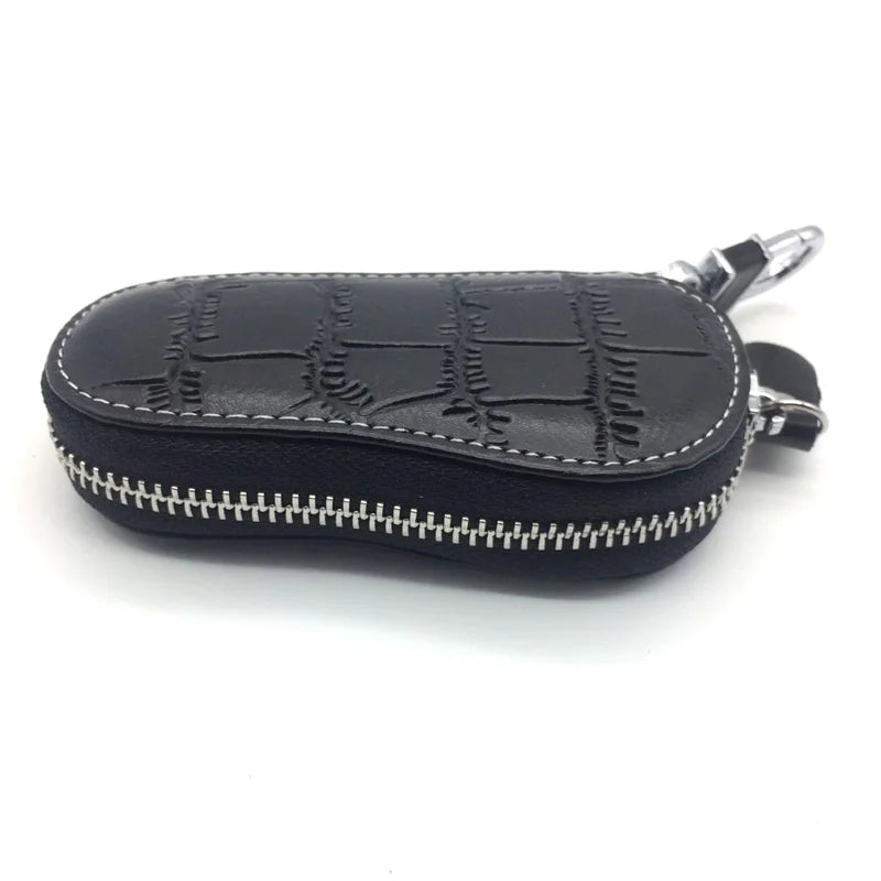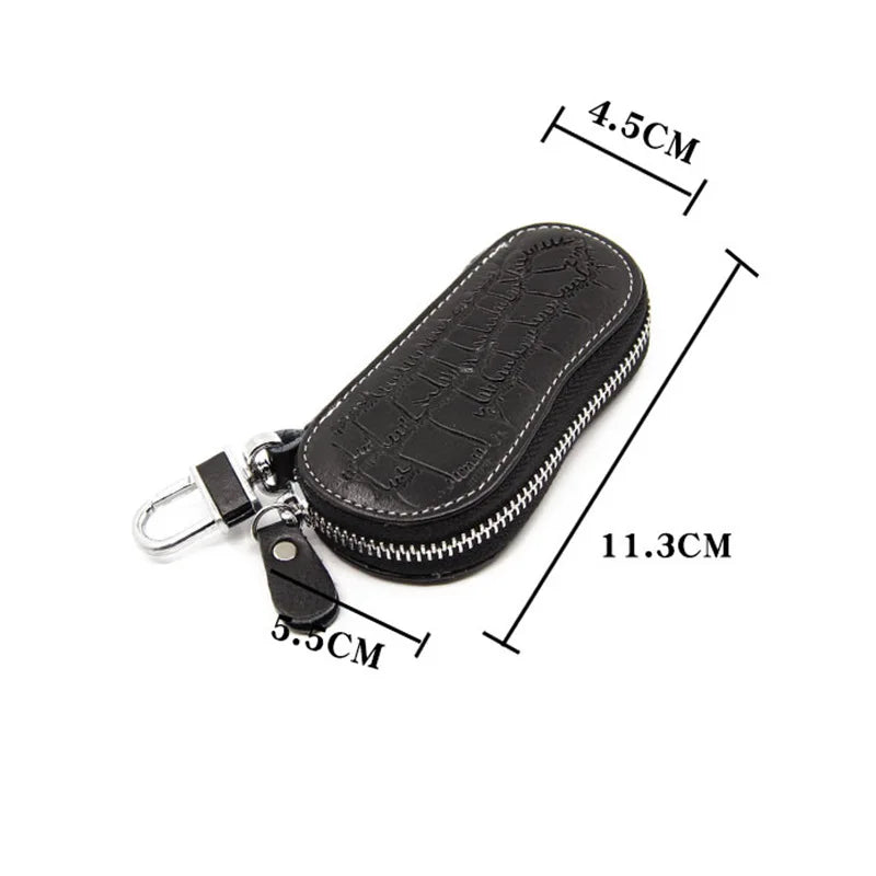 This red key wallet is made of high-quality leather and features a zipper closure. It can hold your keys, coins, and other small items in one organized place.