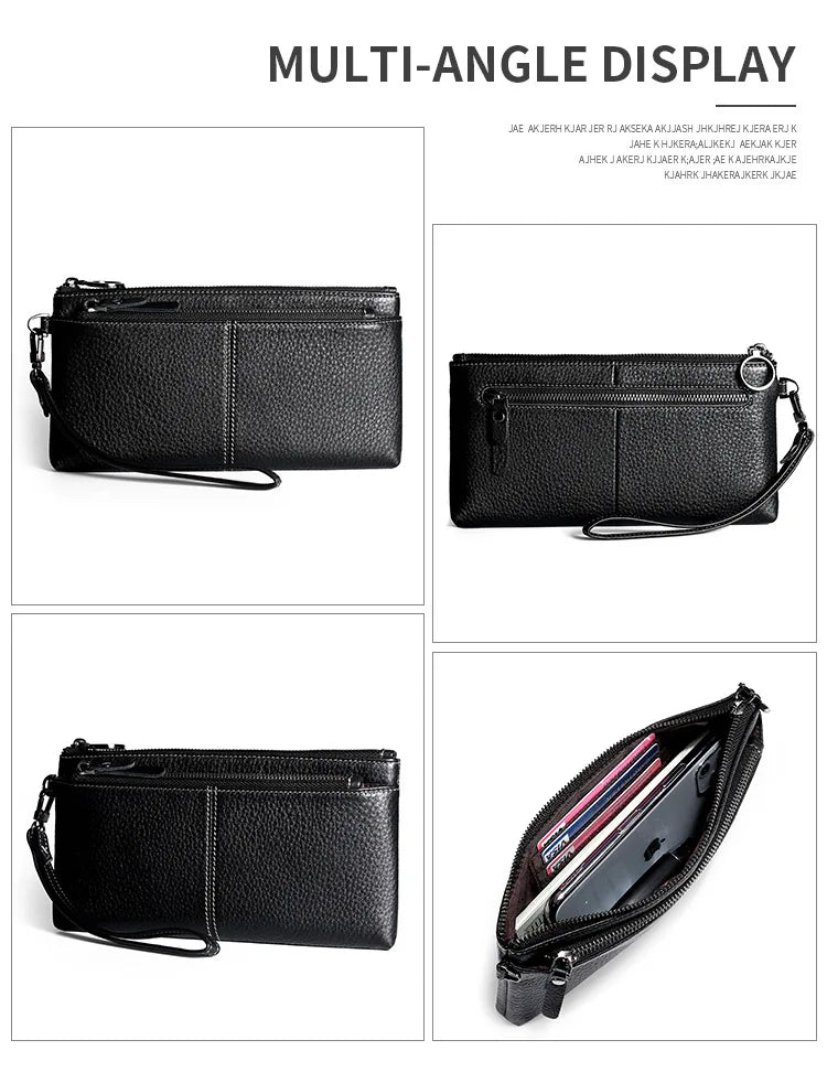 Stay organized in style with this women's long leather wallet featuring a spacious interior and a secure zipper closure. Made of high-quality cowhide leather, this clutch purse is perfect for carrying your essentials.