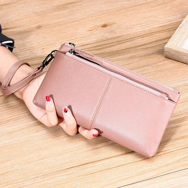 Women Leather Long Wallet Zipper Clutch Purse Cowhide Hand Bag