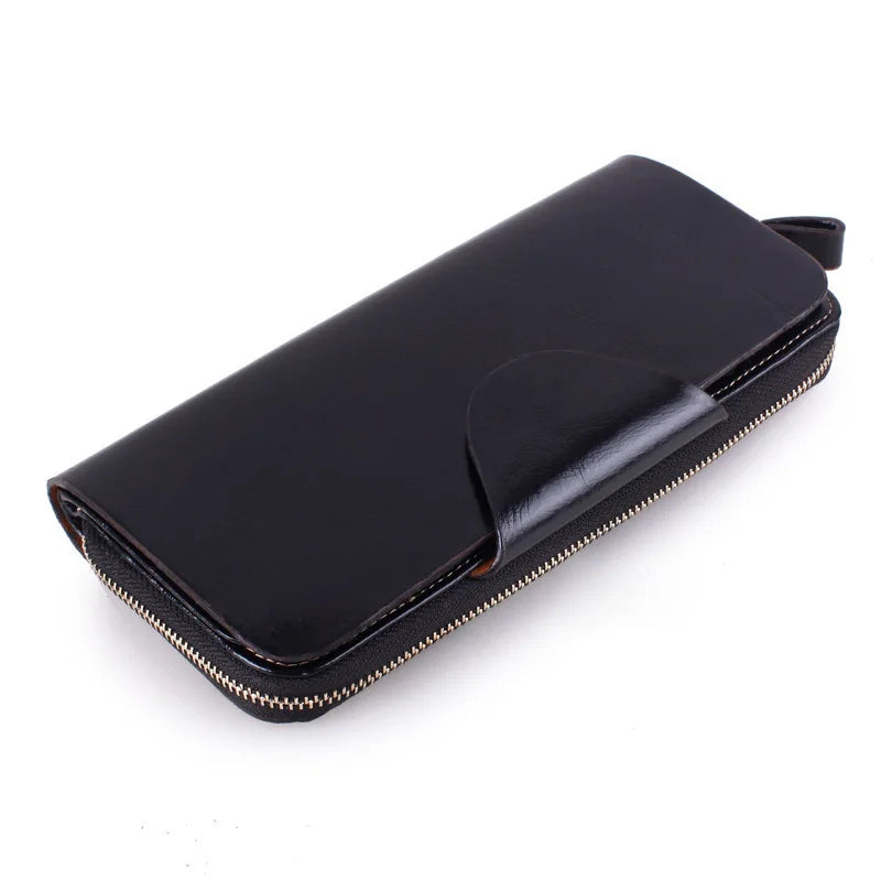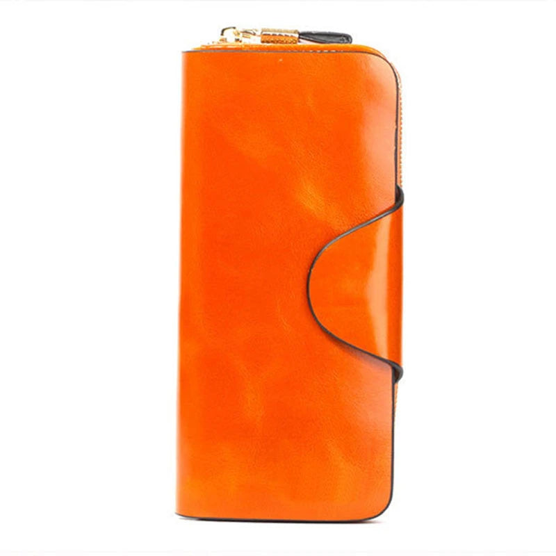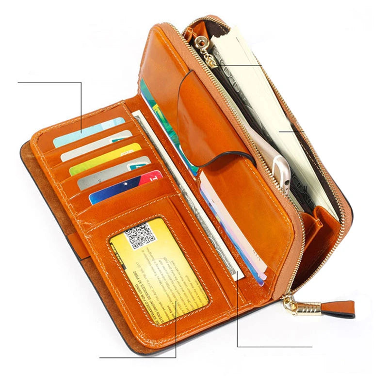 Women Leather Wallets Zipper Oil Wax Leather Long Female Wallet