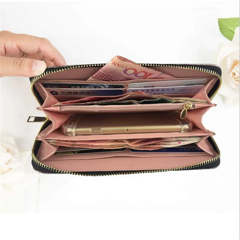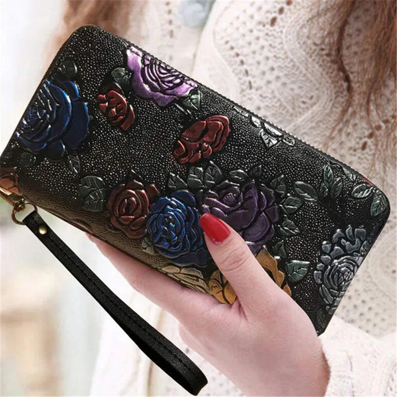 Women Long Wallet Leather 3D Embossing Clutch Bag Large Zipper Hangbags