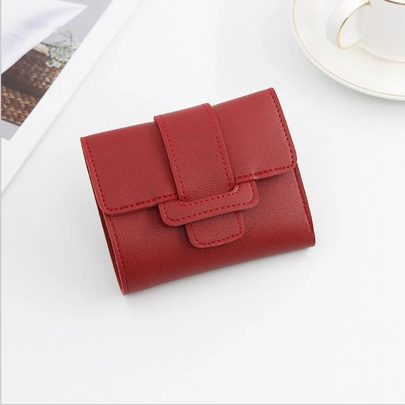 Women Mini Wallet Solid Pumping Belt 3-Fold Short Purse Multi-card Organizer
