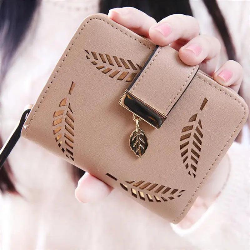 Stay organized with this stylish women's portable wallet adorned with a leaf print design. This small leather wallet features a secure zipper closure and a convenient belt pendant for easy carrying.