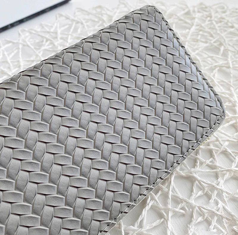 This women's wallet features a stylish PU weave print design, large capacity, and waterproof material. It is perfect for storing cards, cash, and other essentials.
