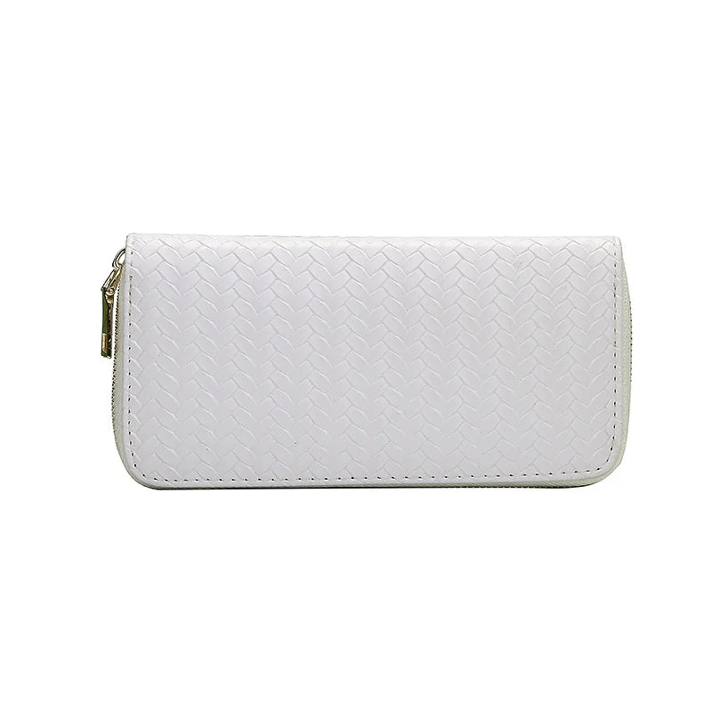 Women PU Weave Prints Large Capacity Waterproof Long Wallet