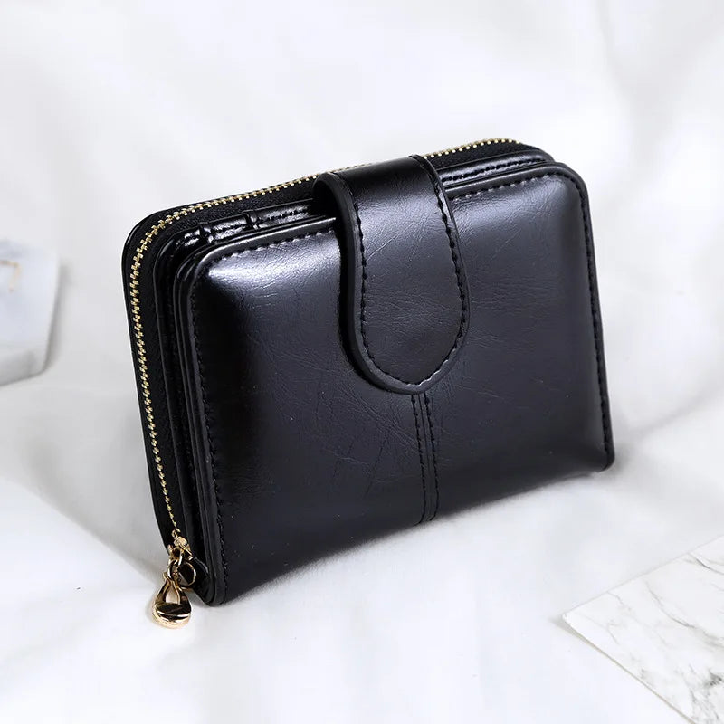Women Retro Zipper Wallet Oil Wax Leather Short Wallet Small Card Bag