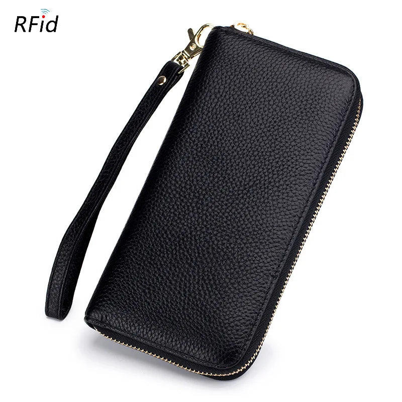 Stay stylish and secure with this women's tassel layer leather RFID wallet purse that offers anti-theft protection.