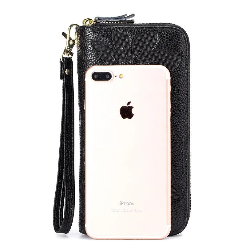 Crafted from first layer cowhide, this wallet is spacious enough to hold all your essentials. With double zipper design, it's perfect for organizing your cards, cash, and mobile phone.