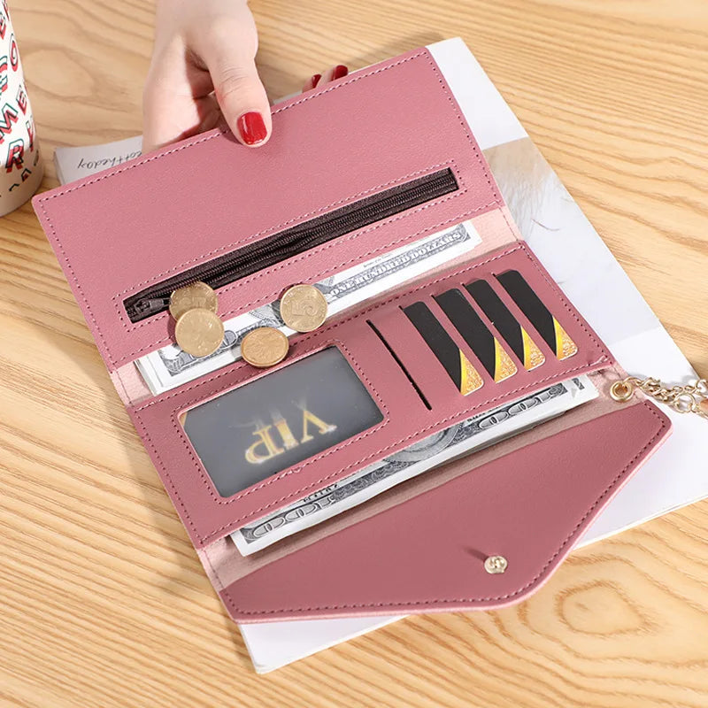 Stay organized with this stylish women's wallet made of high-quality PU leather. Features a functional zipper closure for added security.