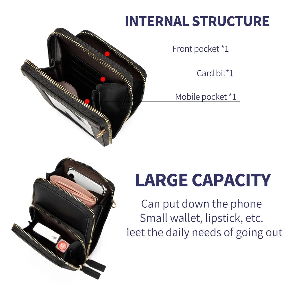 Stay organized and stylish with this versatile PU leather shoulder bag that features a touch screen design for easy phone access.