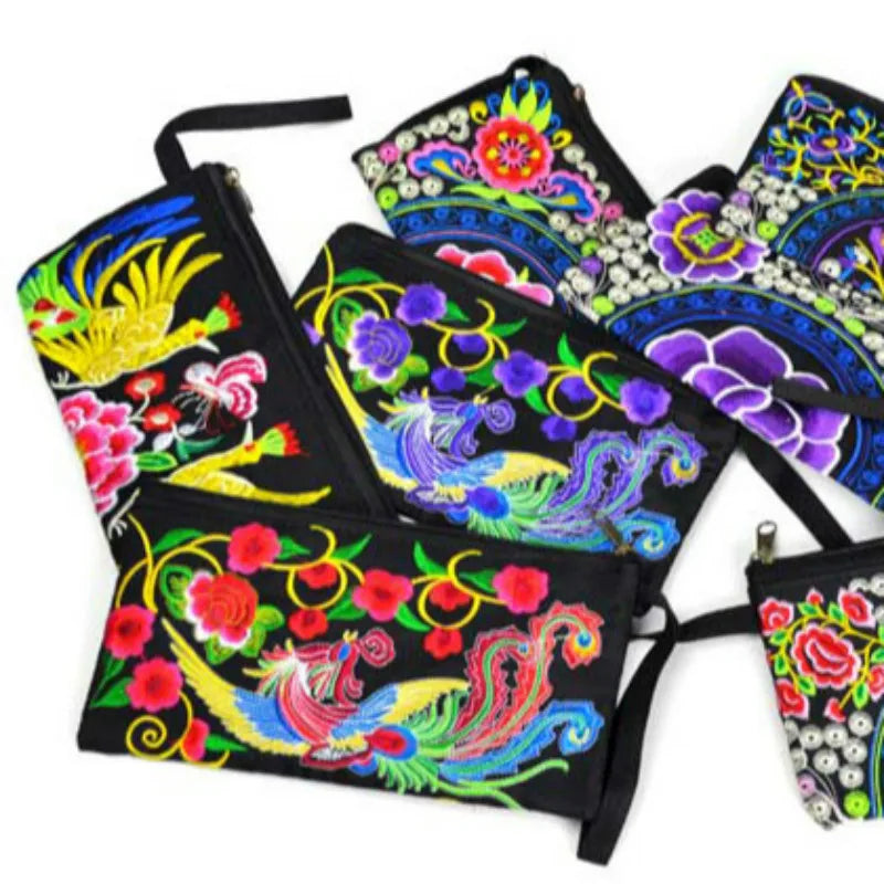 Women's Embroidery Ethnic Mini Wallet Hand Grasp Bag Mobile Drop