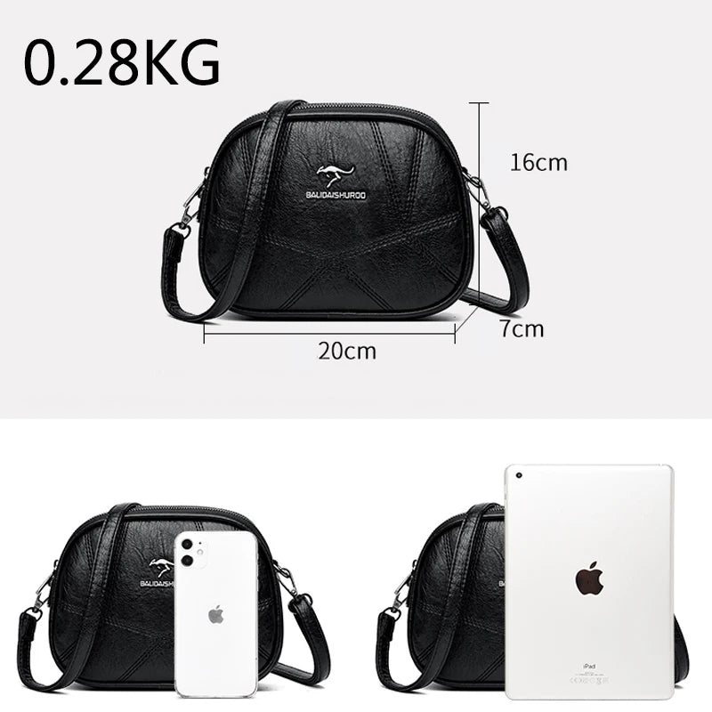 This women's shoulder bag features three layers to keep your essentials organized. It has a large capacity and is perfect for carrying all your items. The bag is designed for everyday use and is stylish and functional.