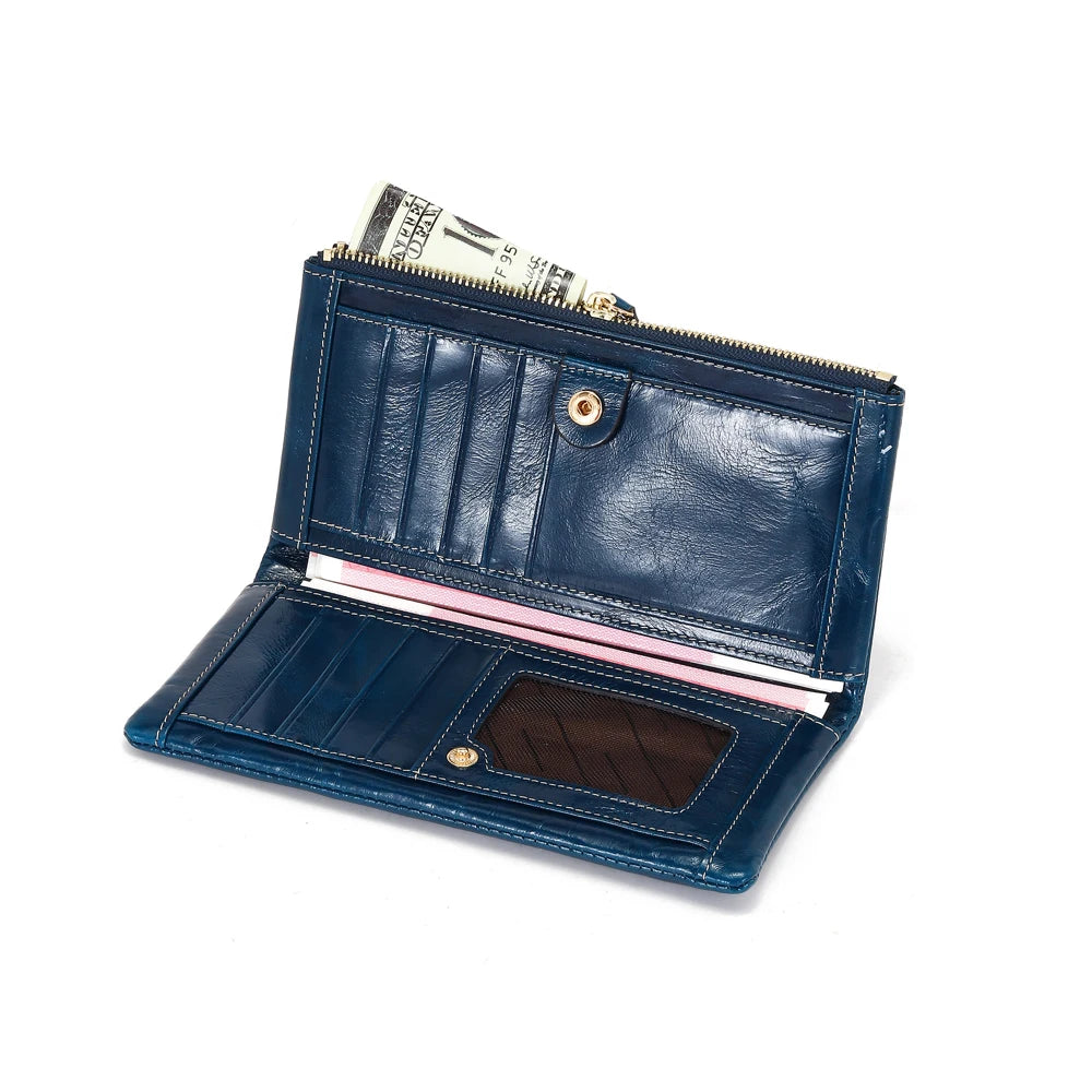 Women's Leather Long Clutch Wallet RFID Anti-Theft