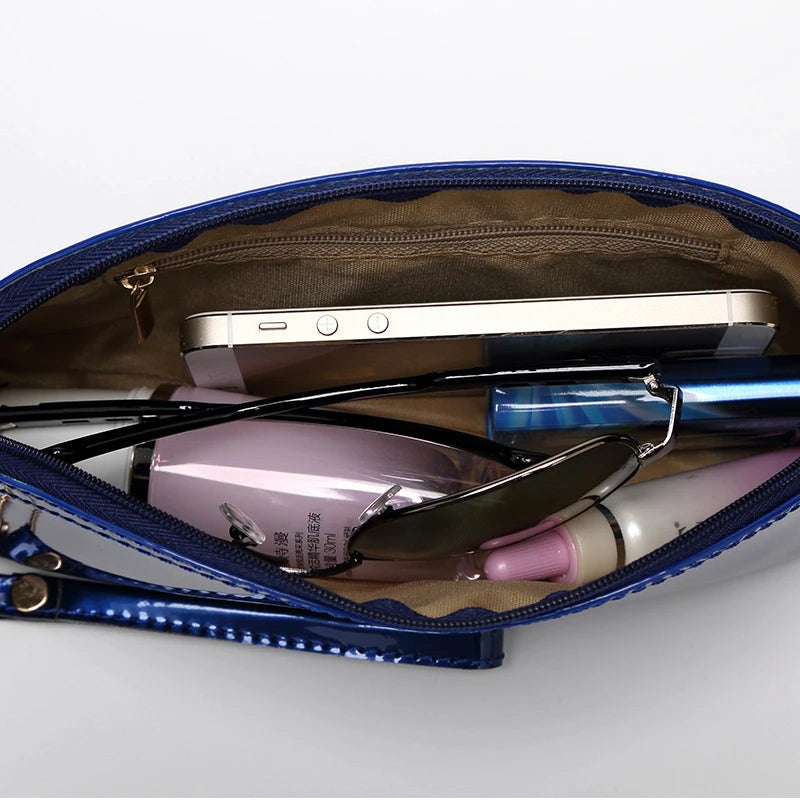 Stay stylish and organized with this women's wallet made of high-quality leather. Perfect for parties! Features a patent leather design in a candy clutch bag style.