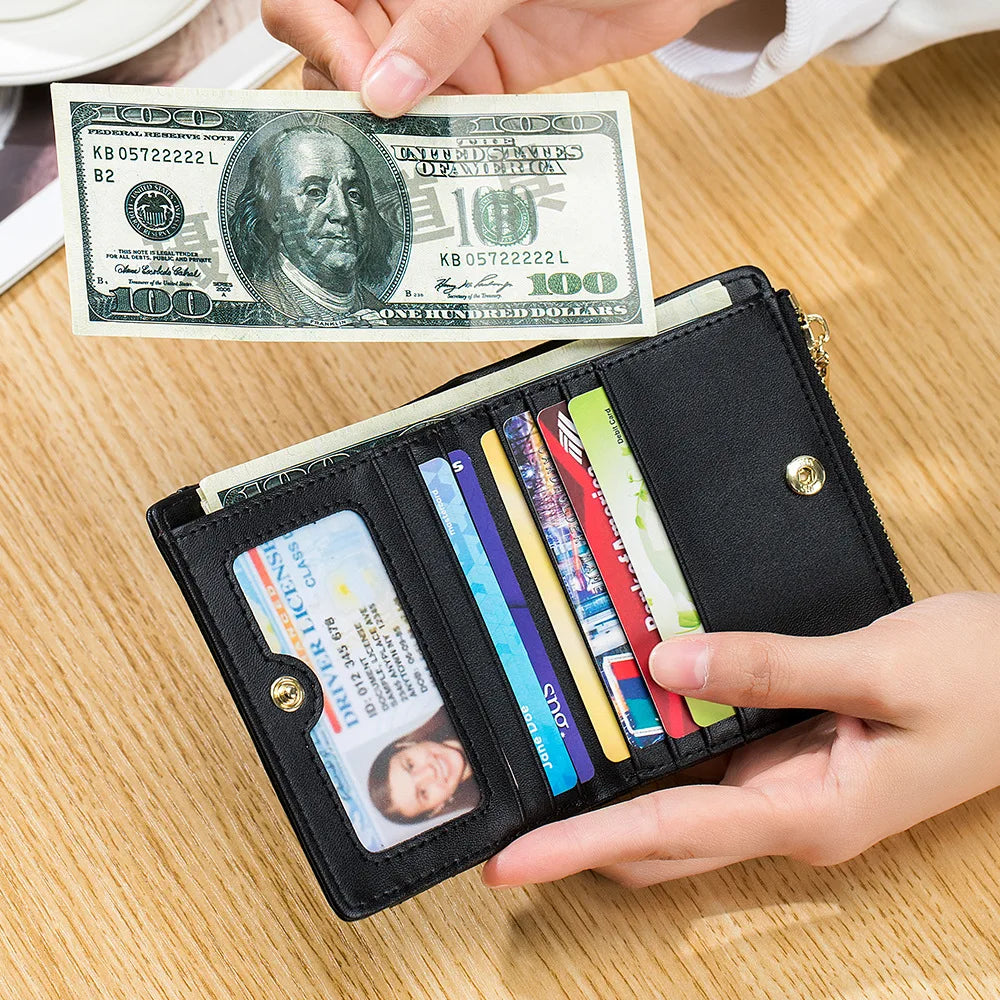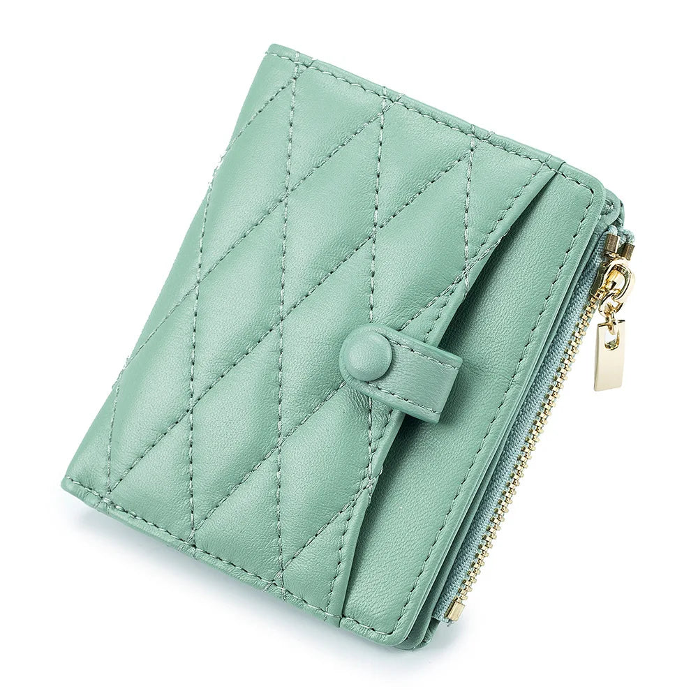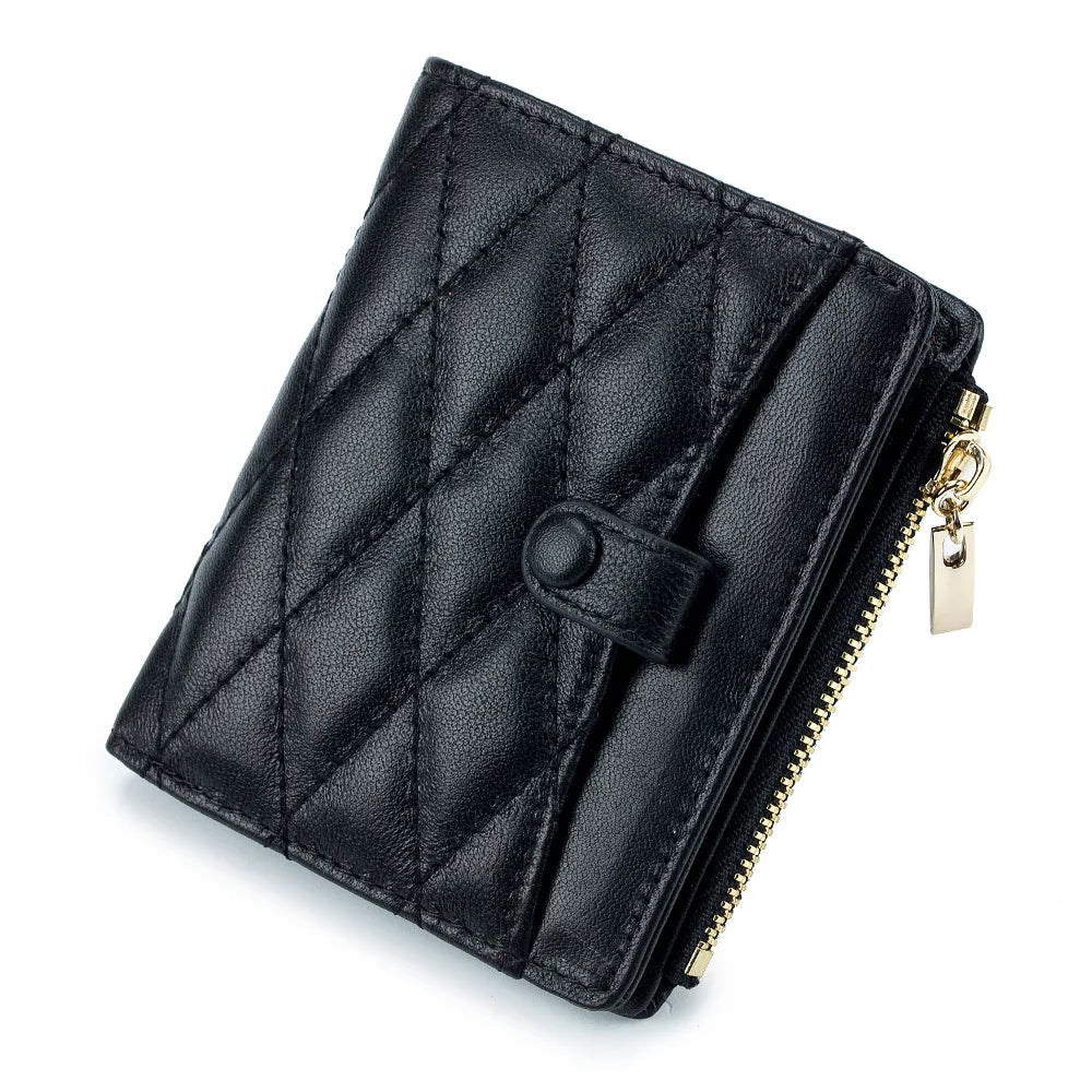 This Women's Leather Short Wallet features a diamond lattice design and is perfect for carrying money and cards. Made of high-quality leather, this small wallet is both stylish and practical.