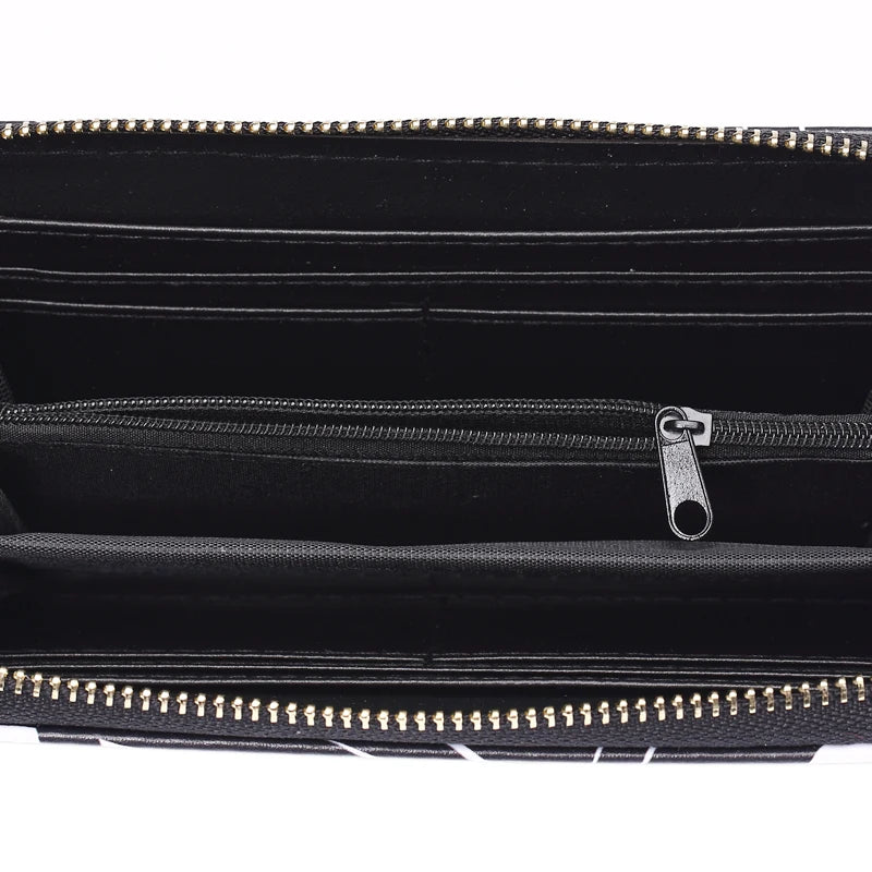 This wallet features a stylish leaves marble print design on durable leather material. It has a zipper closure for security and convenience. Perfect for casual outings or everyday use.