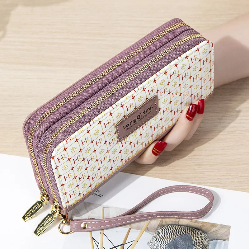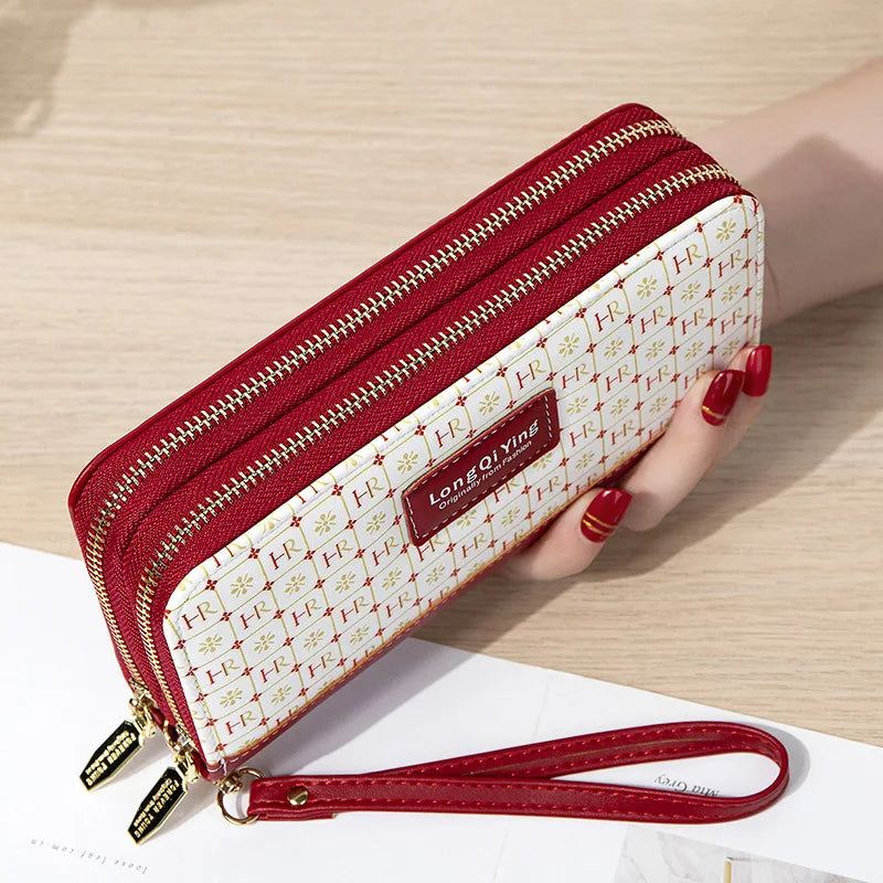This women's wallet features a long style with double zipper closure, making it a versatile version clutch bag for students. It has a large capacity to hold your phone and essentials.