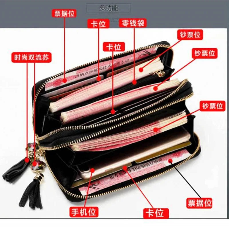 Stay organized with this stylish women's long wallet made from real leather. The wallet features a beautiful floral design and plenty of storage space for cards, cash, and coins.