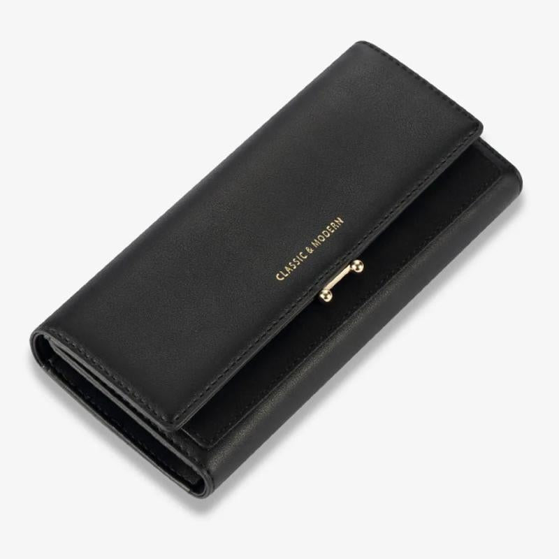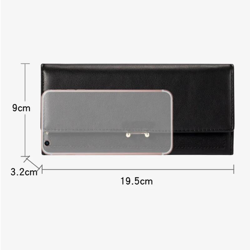 Stay organized in style with this women's long leather wallet. The wallet features a tri-fold design, ample storage space, and a chic clutch purse look.