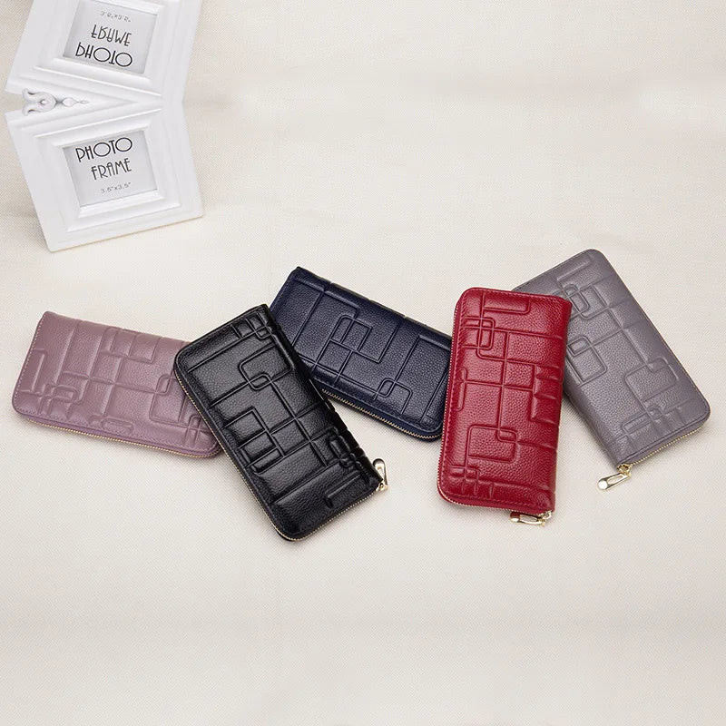 This women's wallet is crafted from pure leather and features a long zipper design. Perfect for carrying all your essentials in style.