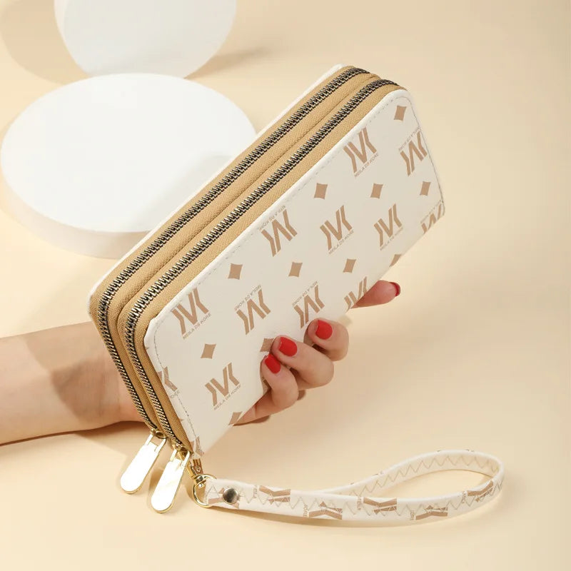 This women's long wallet features a large capacity design with double zippers, perfect for storing your mobile phone. The printed wrist clutch bag is both stylish and functional.