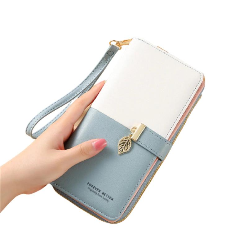 Women's PU Wallet Block Zipper Purse Handheld Money Pouch