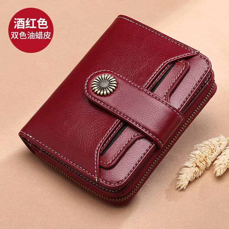 Women's Short Leather Wallet Mini Zero Wallet Driver's Wallet