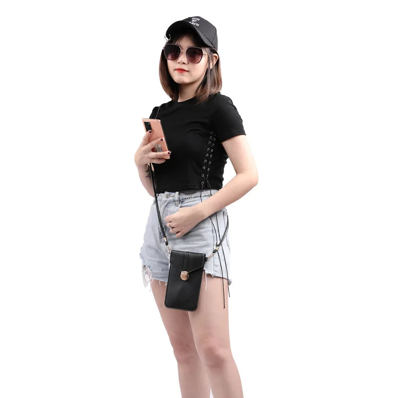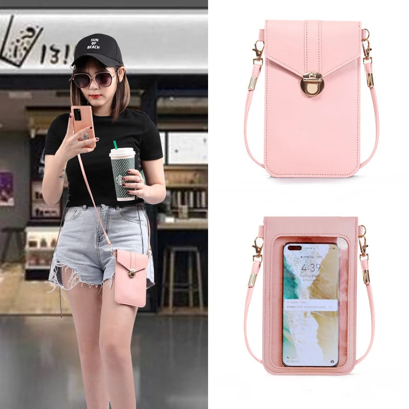 Women's Tide Locks Messenger Pu Leather Touch Screen Mobile Phone Wallet