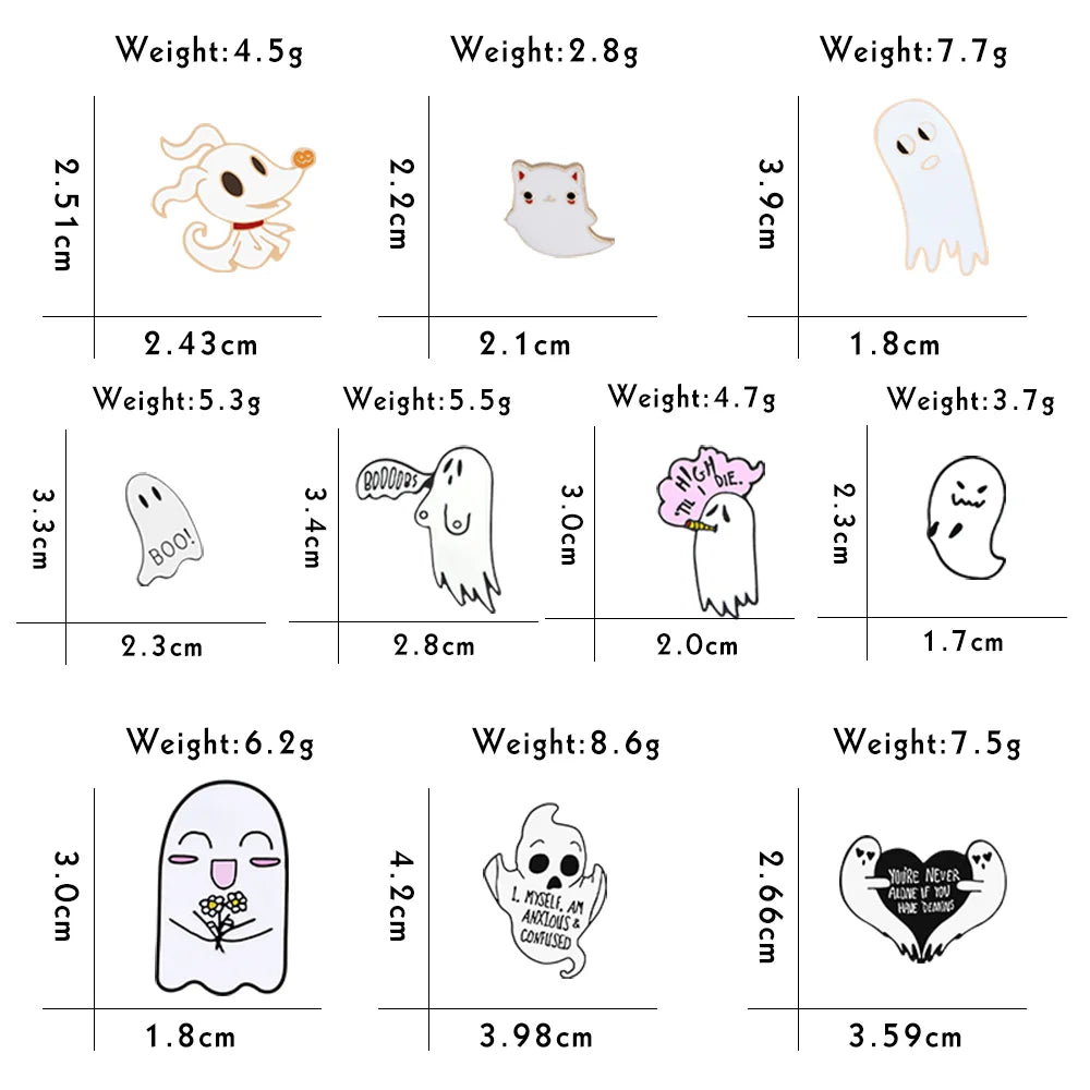 10 Cartoon Spooky Ghost Brooches Punk Lapel Pins Funny Enamel Badges