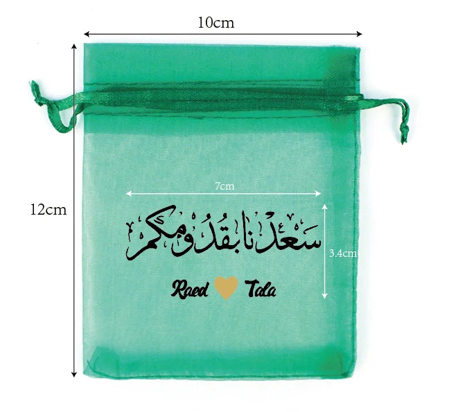 These organza drawstring bags measure 11x16cm and are perfect for gift packaging at weddings or parties. Customize with your logo for an additional cost.