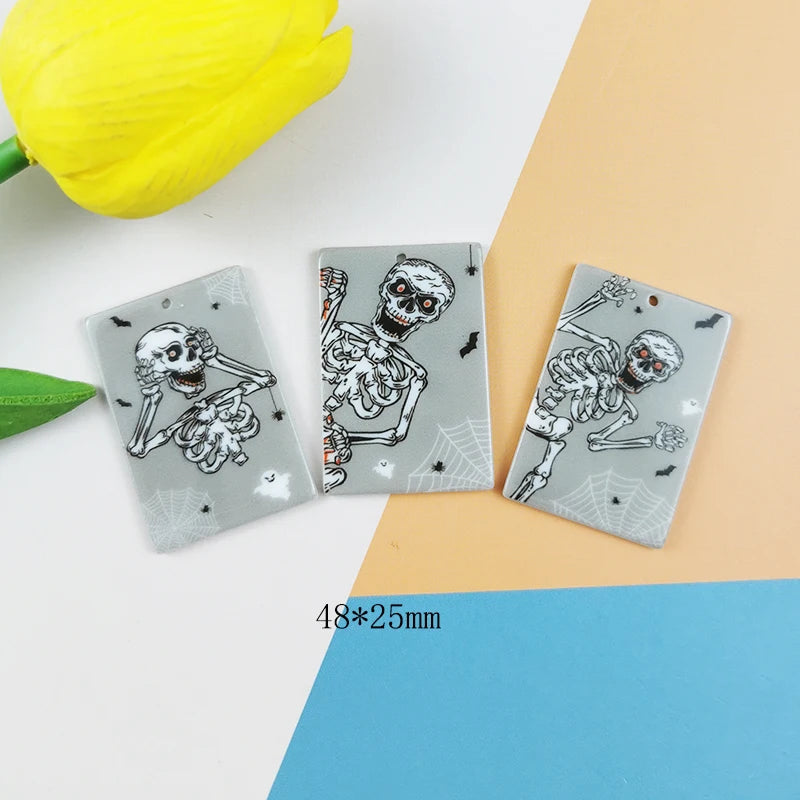 - 10pcs two-sided acrylic Halloween skeleton charms
